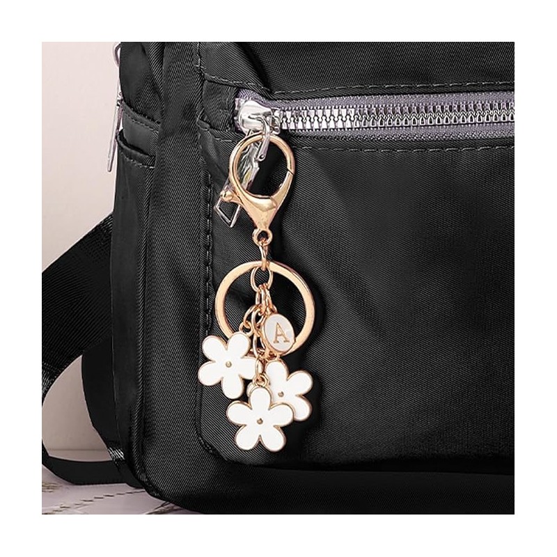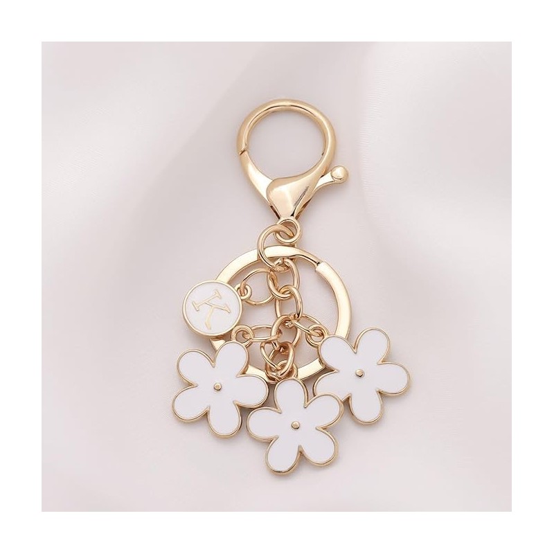 Initial Keychain, Cute Keychains for Women, Car Key Chain Flower Bag Charms for Handbag Backpack Purse (White, One size)