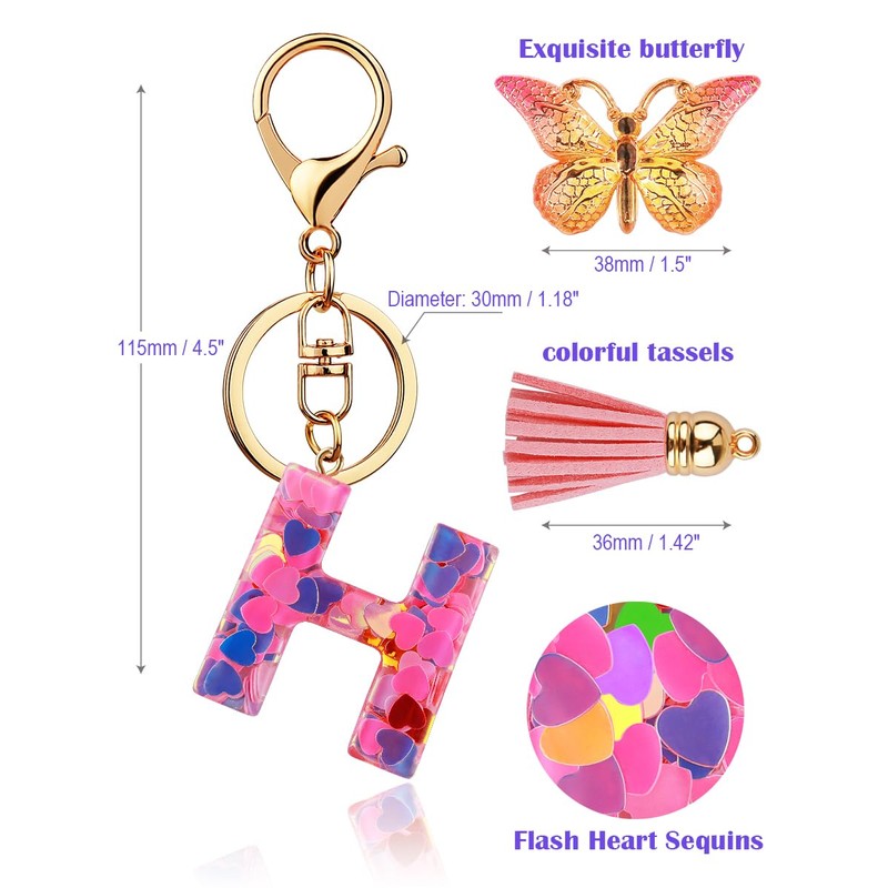 - High quality keychain: The cute women initials keychain is made of resin material, equipped with a pink butterfly and tassel keychain, which has a comfortable touch and is hard and not easy to break. Butterfly car accessories key buckle bracelet accessories, personalized keychain is a great women car accessory.