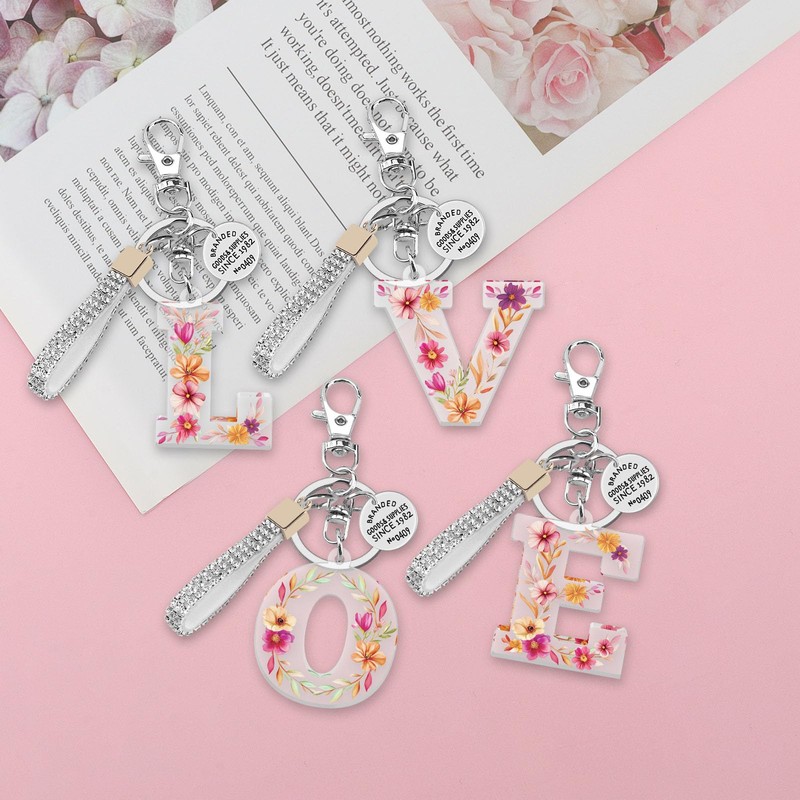 - [ High Quality Keychain ] This initial keychain is made of high quality acrylic material, the key ring is made of high quality stainless steel, and the flower pattern is added to the acrylic letters for a vibrant look.