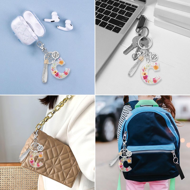 Gift Choice: This initial keychain is perfect for gift giving, keys and bags are things you use every day, and with a keychain embellishment, the recipient will think of you when they use their keys or bag.