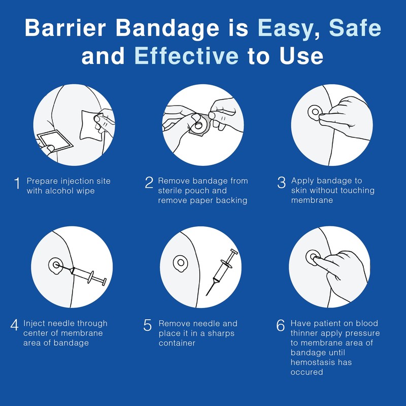 - INJECT-SAFE BARRIER BANDAGE is an innovative protective barrier that limits contact with exposed injection site for both patients and healthcare professionals. Self-adhesive bandage is applied prior to subcutaneous or intramuscular injection to help safely contain any post-injection bleeding. Limits blood exposure to patients and minimizes healthcare professional contact with bloodborne pathogens
