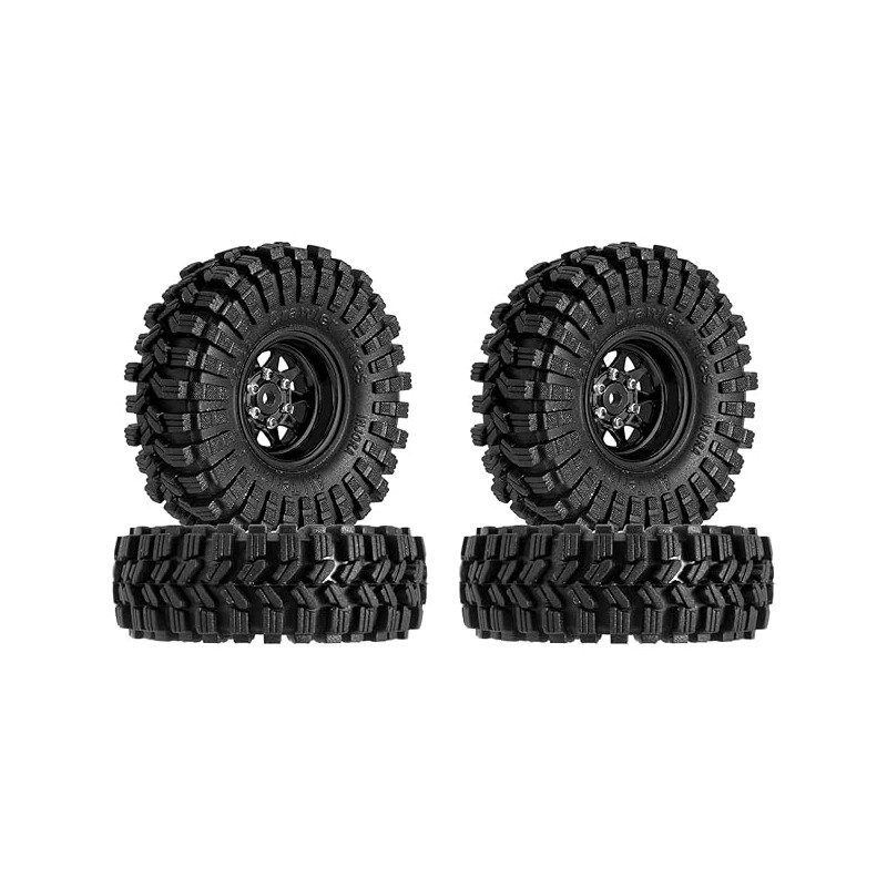 INJORA 1.0 Beadlock Wheel Tires Set -3.78mm Offset Wheel Rims for 1/18 1/24 RC Crawler Car Axial AX24 SCX24 FMS FCX24 TRX4M,Black(W1004-T1014)