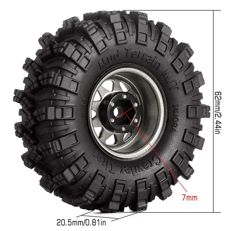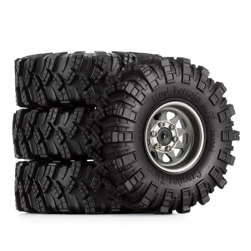 INJORA 1.0 RC Beadlock Wheel Mud Tyre Set Deep Dish 1.0 Wheels Tyres for Axial SCX24 FCX24 FCX18 Gladiator Deadbolt Bronco C10 JLU Upgrade Parts RC Crawler Car, Grey