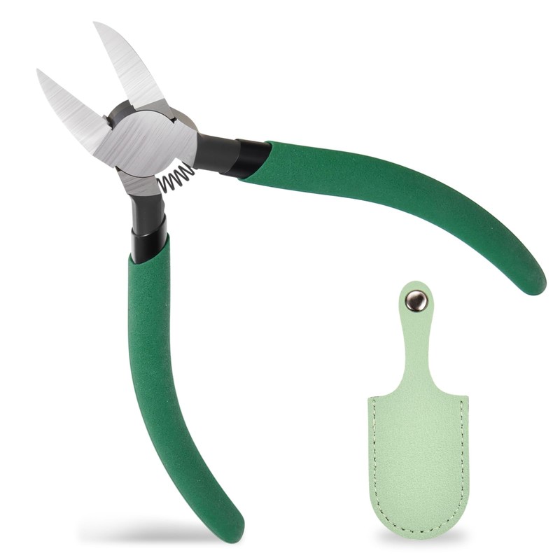 INJOYTEC Wire Side Cutters Clippers 45 Angled Flush Cutters Diagonal Pliers for Flush Cut Plastics Artificial Flowers Zip Tie Cutter for Cable Tie Wire Cutting Tool for Guitar Strings Green