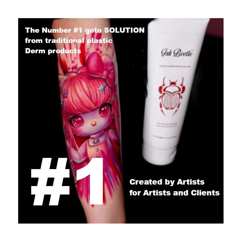 Ink Beetle forms a protective Derm barrier that prevents dirt and bacteria from contaminating your fresh tattoo. It helps prevent infection all while soothing your tattoo with natural organic ingredients. its Vegan friendly and contains no adhesives.