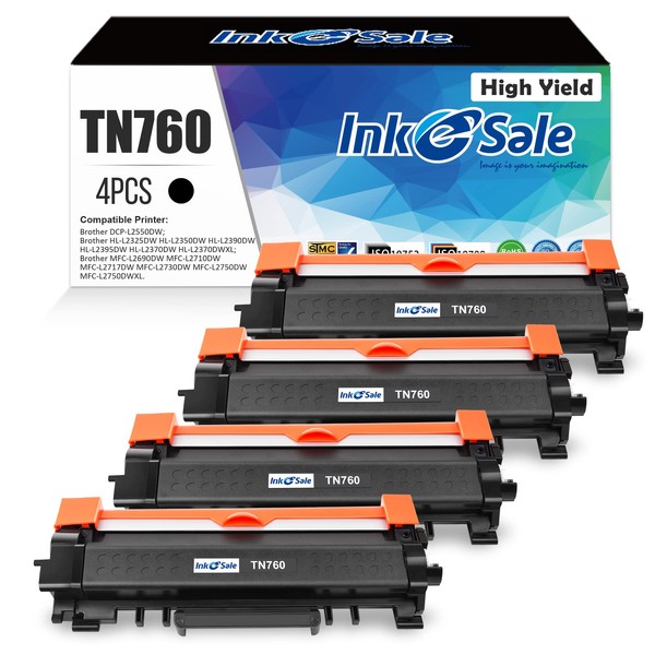 INK E-SALE 4 Packs Remanufactured TN760 Toner Cartridge Replacement for Brother TN760 TN730 TN770 for HL-L2325DW HL-L2350DW HL-L2370DW DCP-L2550DW MFC-L2690DW MFC-L2710DW MFC-L2717DW MFC-L2750DW