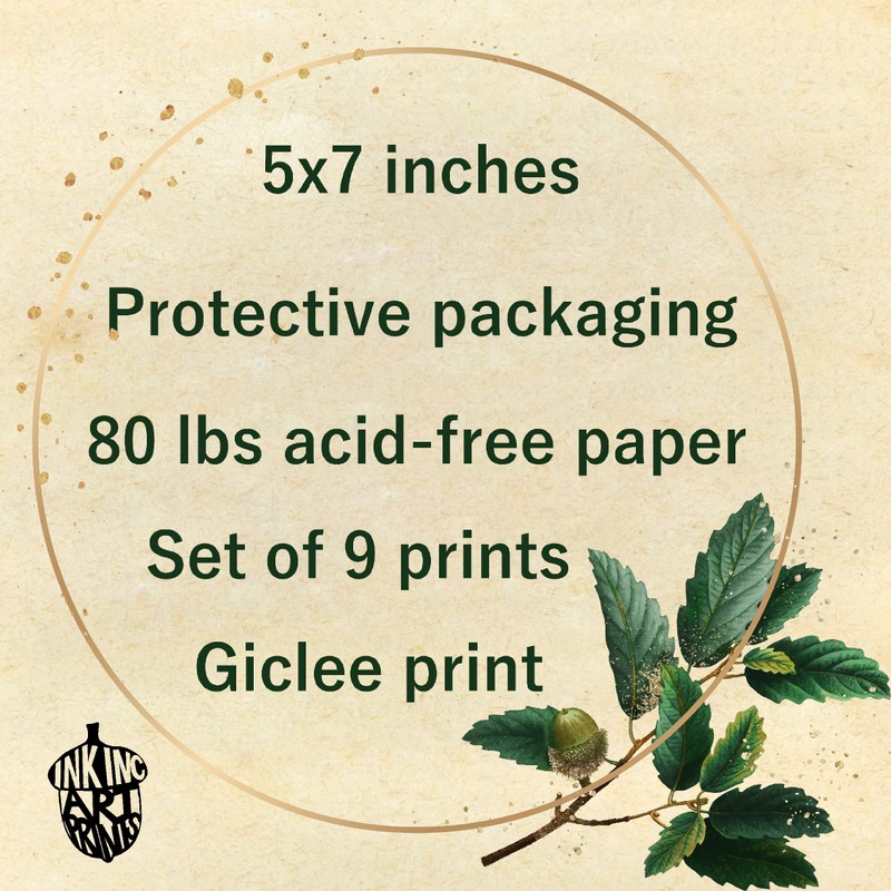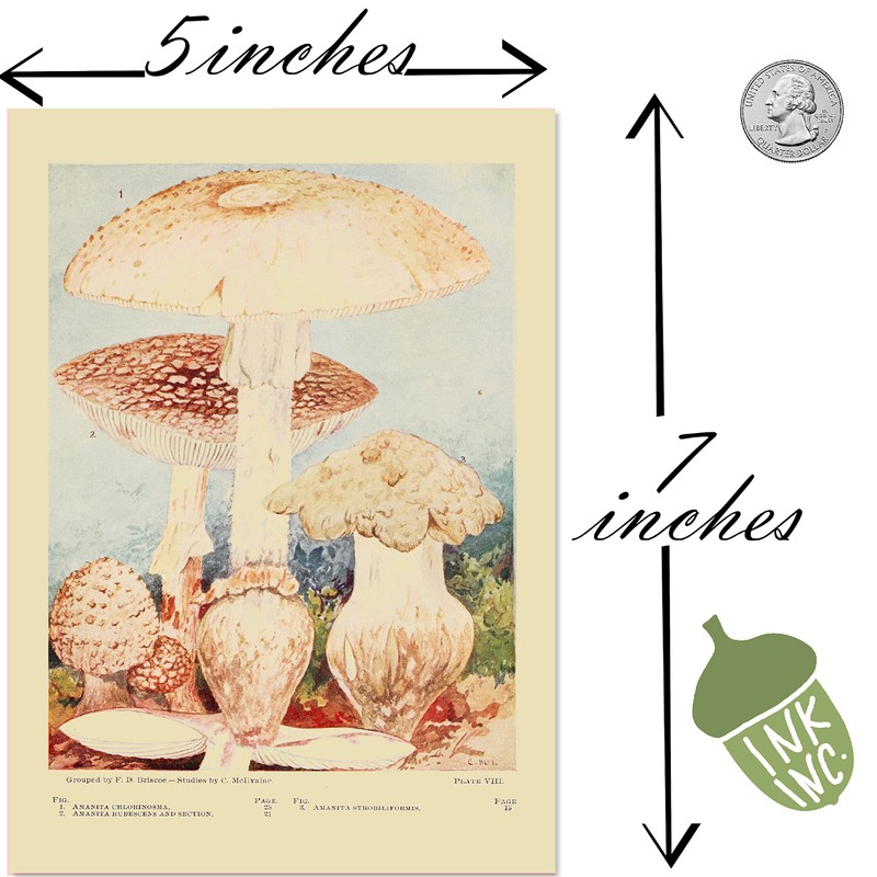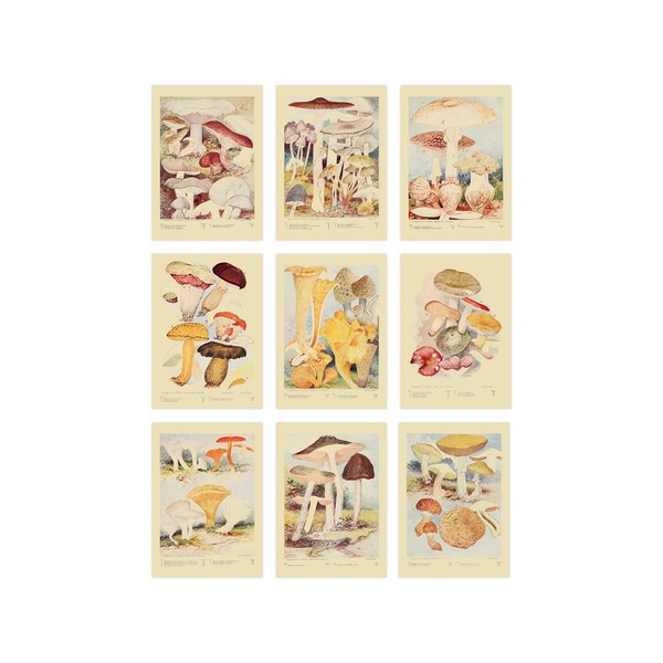 Ink Inc. Botanical Wall Art Prints - Wild Mushrooms - Set of 9 5x7 inches - Unframed