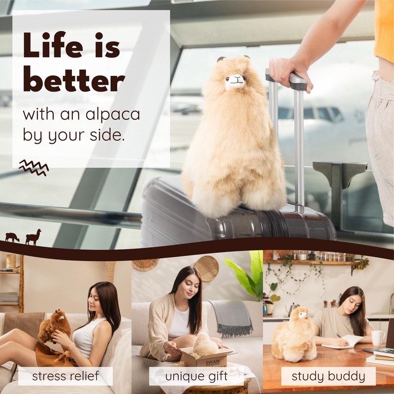 Inkari Alpaca Stuffed Animal I 12.6 inch I Made of Real Alpaca Wool – Super Cute Alpaca Plush Toy (Medium-Walnut)