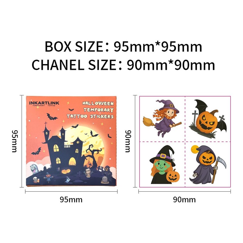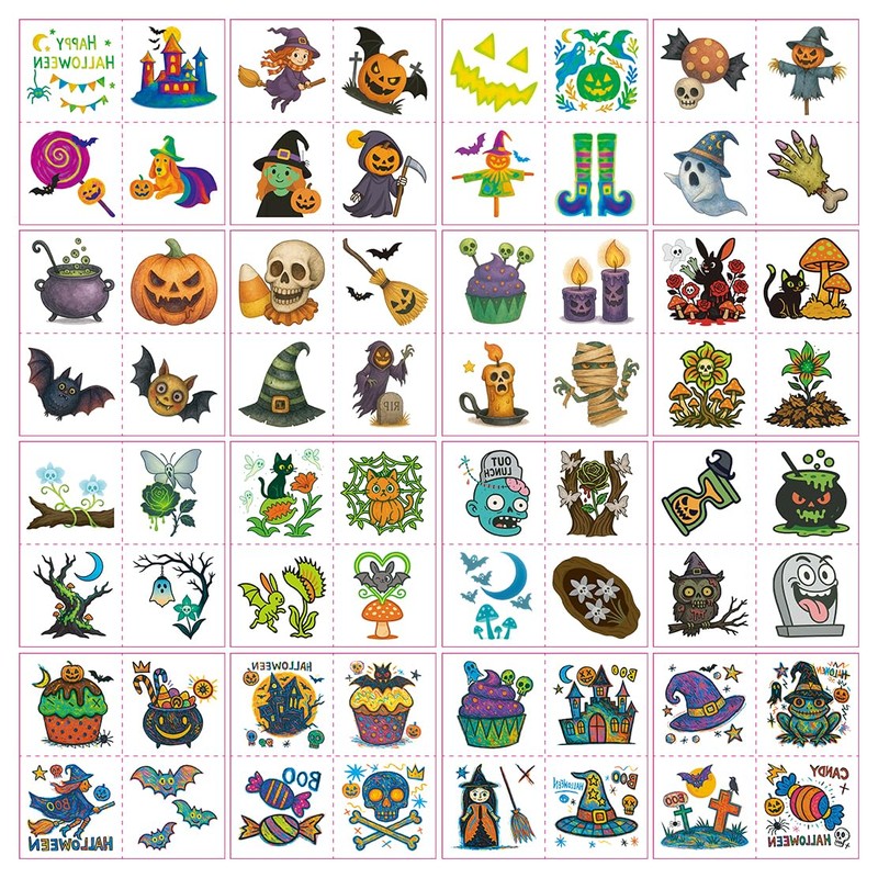 INKARTLINK Halloween Tattoo Stickers, Water Transfer Stickers, For Skin, For Items, Lasting Clean, Water Resistant, 64 Designs in Total