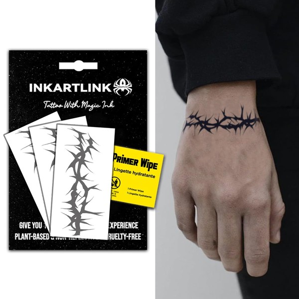 INKARTLINK Semi Permanent Tattoos, 3 Sheets of Small Temporary Tattoos, Adult Art Designs, Party Favors, Waterproof, Realistic, No Adhesive, No Reflective, Lasts 1-2 Weeks (Thorns)