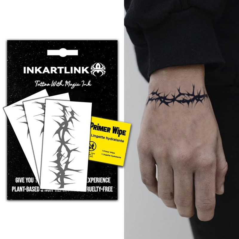- Exotic products INKARTLINK temporary tattoo is not a simple tattoo sticker. It is different from the ordinary stickers we were familiar with when we were children. This product is waterproof, friction-resistant, and non-reflective. It is almost the same as a real tattoo and lasts up to 1-2 weeks. Our store provides a variety of Exquisite designs are available for customers to choose from, and we hope to satisfy all customers.