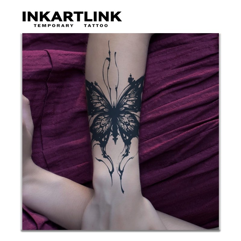 INKARTLINK Tattoo Tech, 2 Sheets Large Semi Permanent Tattoo, Adult Art Design Temporary Tattoos, Lasts 1-2 Weeks, Waterproof, Realistic Look, No Adhesive, No Reflection (Dark Butterfly Design)