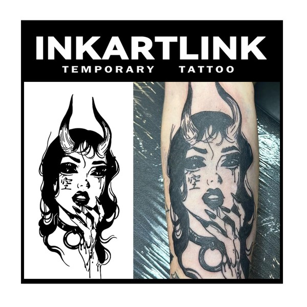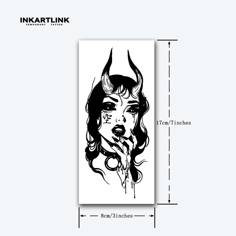 INKARTLINK Tattoo Tech, 2 Sheets Large Semi Permanent Tattoo, Adult Art Design Temporary Tattoos, Lasts 1-2 Weeks, Waterproof, Realistic Look, No Adhesive, No Reflection (Enchanting Demoness Design)