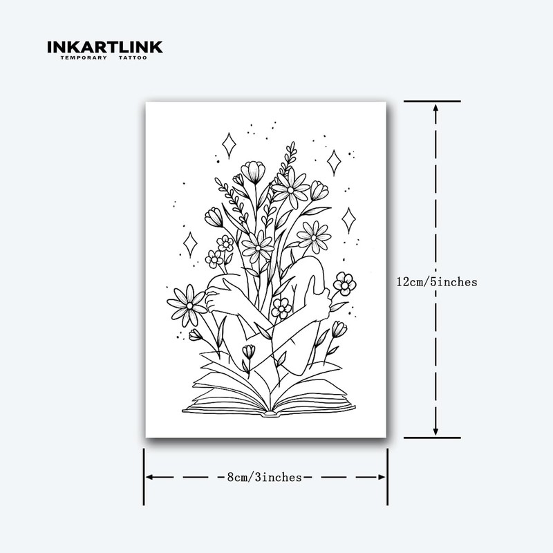 INKARTLINK Tattoo Tech, 2 Sheets Medium Semi Permanent Tattoo, Adult Art Design Temporary Tattoos, Lasts 1-2 Weeks, Waterproof, Realistic Look, No Adhesive, No Reflection (Woman in a Book Design)