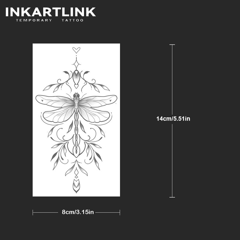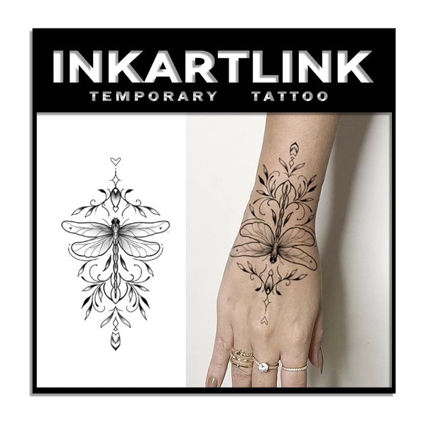 INKARTLINK Tattoo Tech, 2 Sheets Medium Semi Permanent Tattoo, Adult Art Design Temporary Tattoos, Lasts 1-2 Weeks, Waterproof, Realistic Look, No Reflection (Dragonfly Vines)