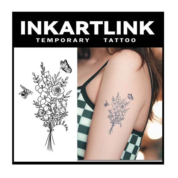 INKARTLINK Tattoo Tech, 3 Sheets Small Semi Permanent Tattoo, Adult Art Design Temporary Tattoos, Lasts 1-2 Weeks, Waterproof, Realistic Look, No Adhesive, No Reflection (Elegant Flower)