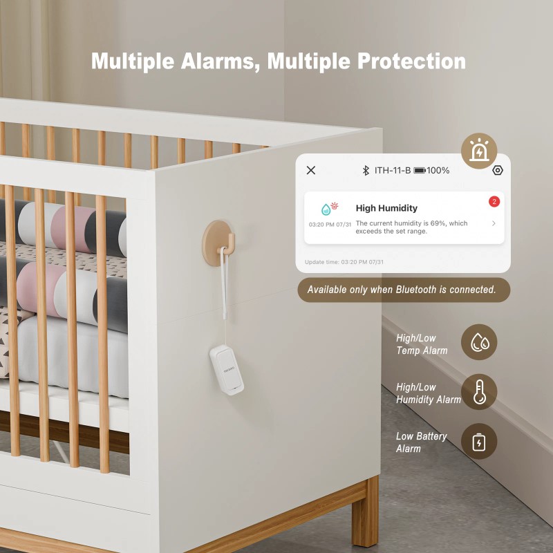 • Smart Alarm Notifications: Set alarm ranges for temperature and humidity on the INKBIRD App. When the monitored values are out of range, you will instantly receive a notification on your phone. (Only when the device and cell phone are connected via Bluetooth)