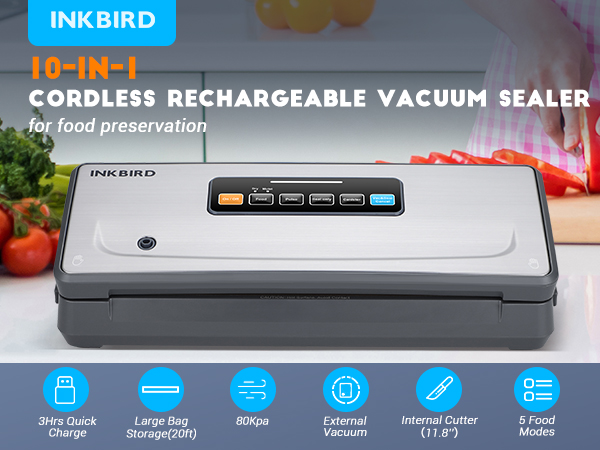 Inkbird Cordless Rechargeable Vacuum Sealer Machine Food Preservation 3Hrs Quick Charge