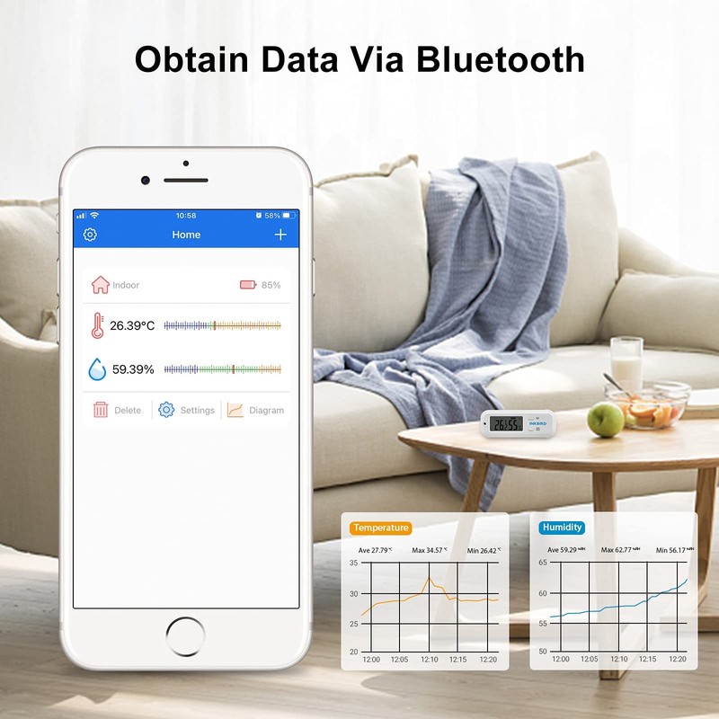 - 【 Bluetooth Connection】 As a smart sensor featured Bluetooth function, it can connect your phone and enables you to check temperature and humidity via your phone in a long distance of up to 98ft/30m.