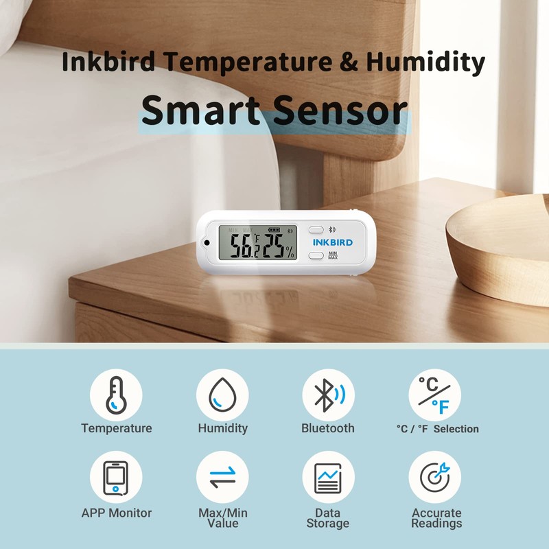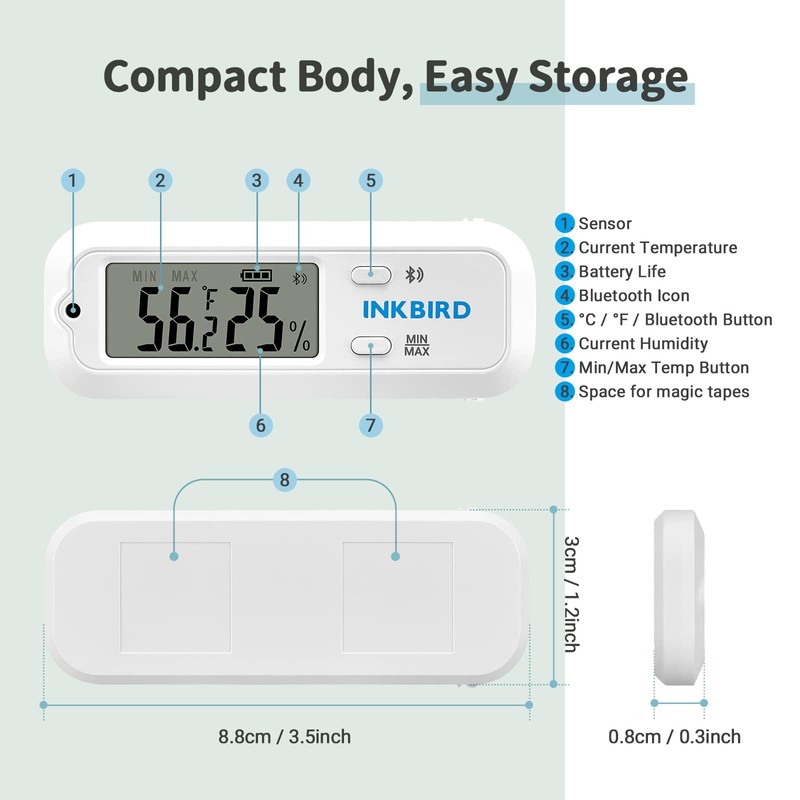 - 【Small Size & Functional】 Inkbird smart sensor is well-designed into a compact body and equipped with 3 functional buttons for convenient operation.