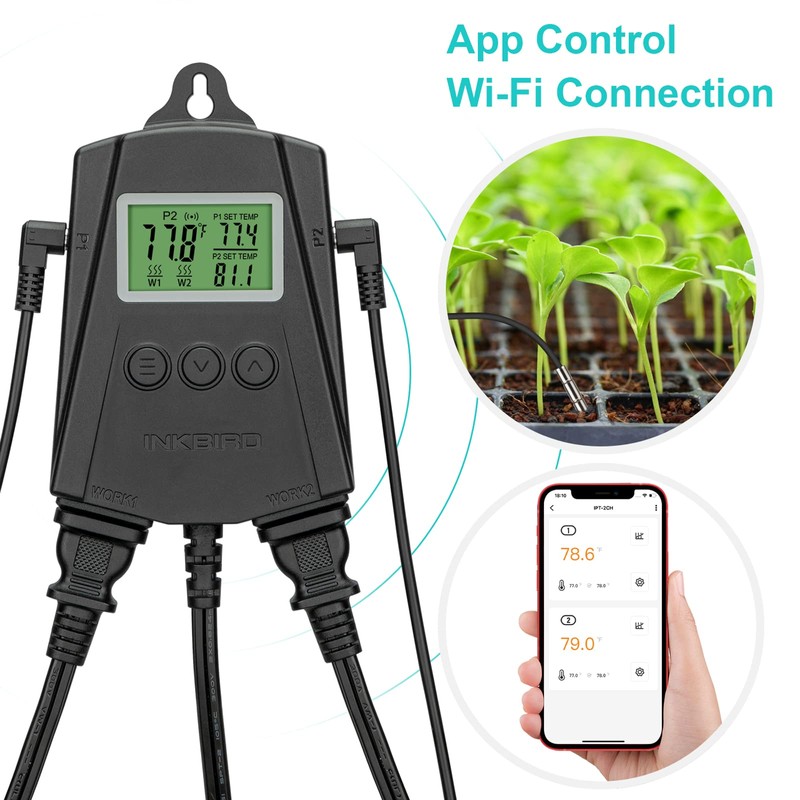 Inkbird Heat Mat Thermostat IPT-2CH Digital Adjustable Heat Mat Temperature C...