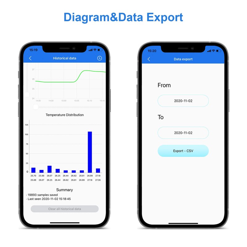 • 🌿【APP Control】 Supports temperature graph, interrecord gap setting, alarm and remote control. One mobile phone can monitor more than one sensor, and one sensor can be monitored by more than one mobile phone.