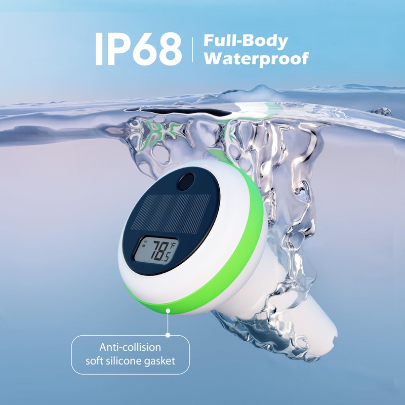 - 【Solar-Powered Efficiency】 This pool thermometer boasts an innovative solar-powered design, zero battery costs, reliable monitoring, and planet-friendly convenience.