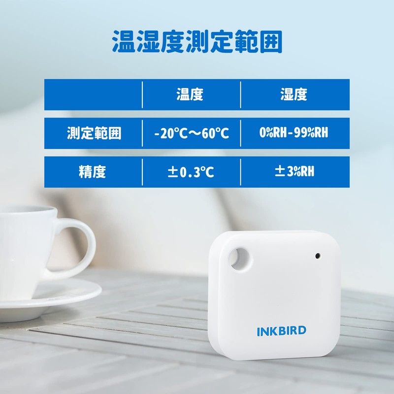 - High-precision WiFi thermometer/hygrometer: This temperature and hygrometer can record temperature and humidity simultaneously. Temperature range: -20℃ to 60℃, Humidity range: 0%RH to 99%RH Temperature measurement accuracy: ±0.3°C; Humidity measurement accuracy: ±3%RH Corrects with the app "INKBIRD" for Wi-Fi Thermo-Hygrometer. Digital Thermometer