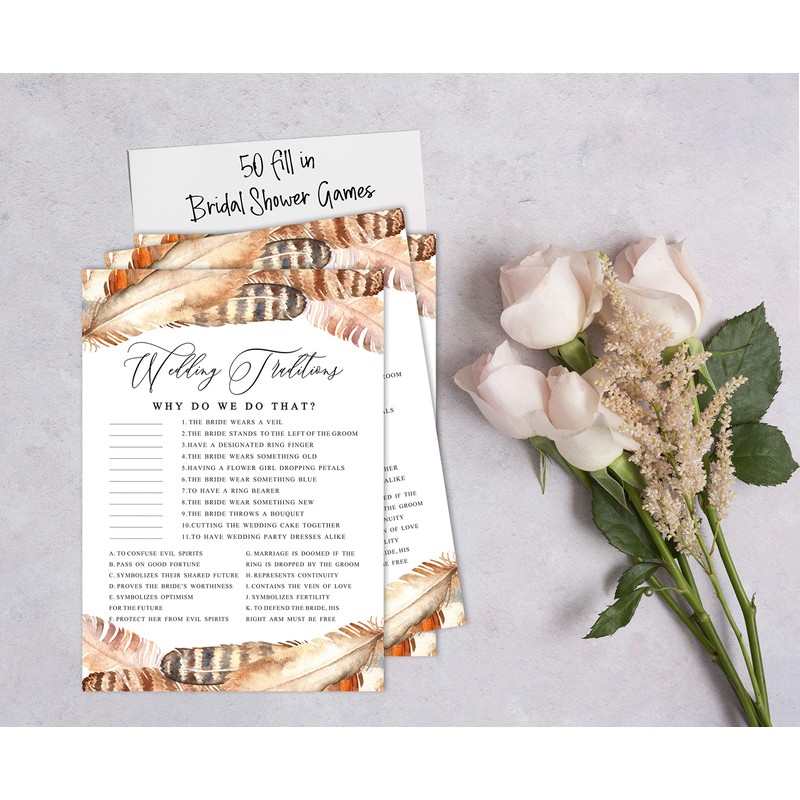 Inkdotpot 50-Pack Feathers Why Do We Do That Bridal Wedding Shower Game Bachelorette Party Activity Game Cards