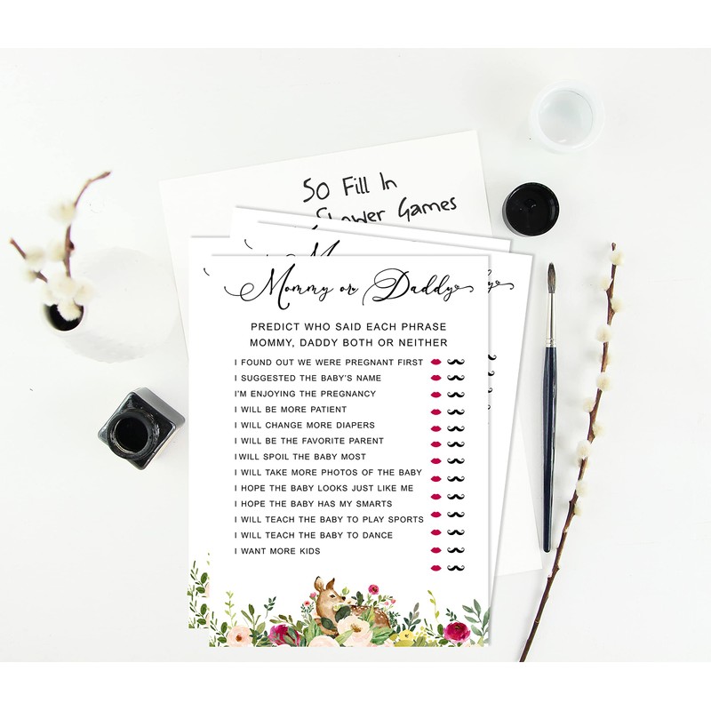 Inkdotpot Mommy Or Daddy Who said it Game Its A Boy Its A Girl Deer Animal Set Of 50 Fun Baby Shower Game Party Supply