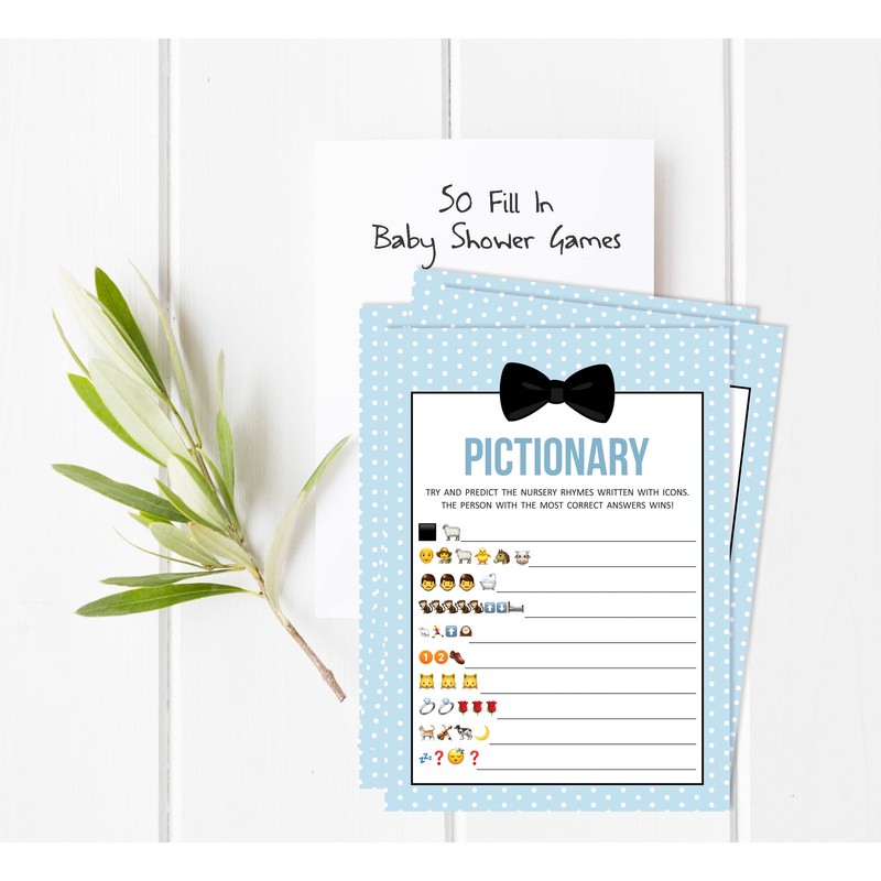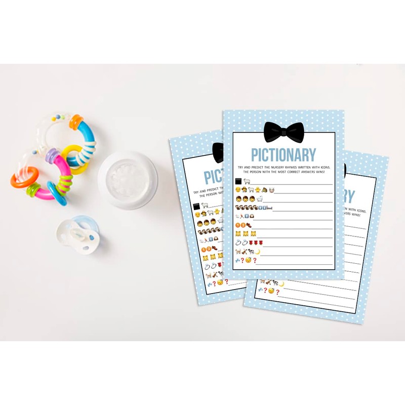 Inkdotpot Pack of 50 Boy Boy Baby Shower Party Collection, Pictionary Baby Shower Party Games, Activities, Decorations, Little Man Theme Party Supplies
