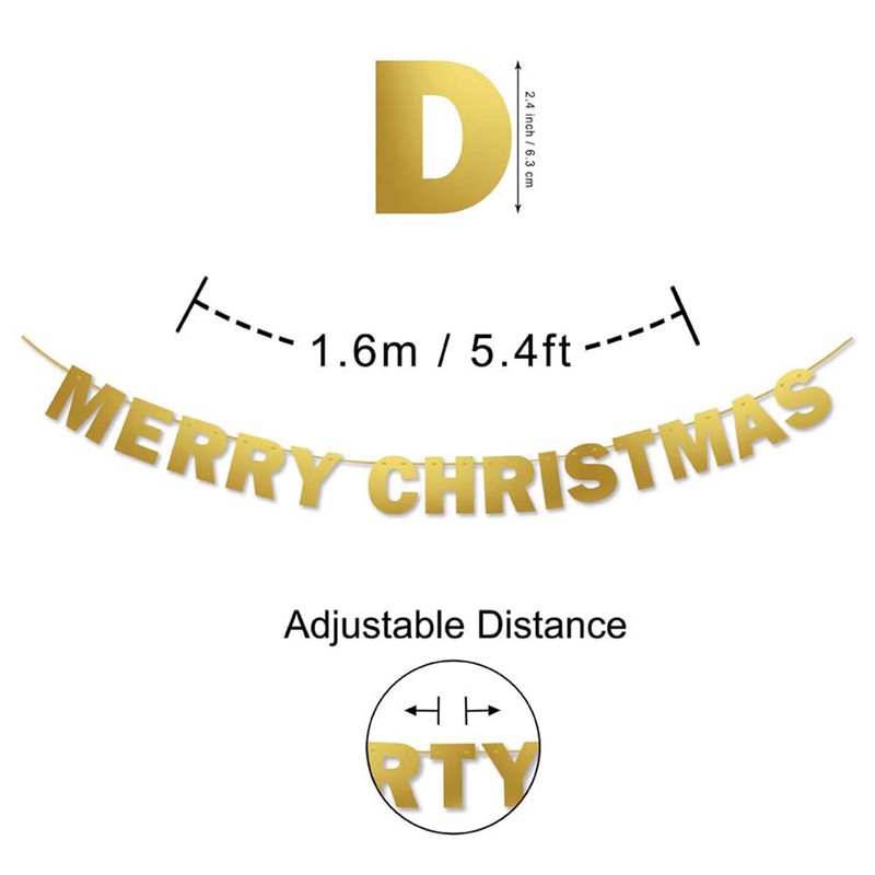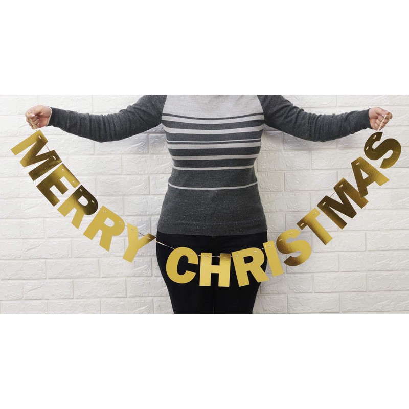 Inkdotpot Pre Strung Bunting Merry Christmas Banner Ready to Hang Metallic Gold Rustic Wall Decor Bunting Flag Garland