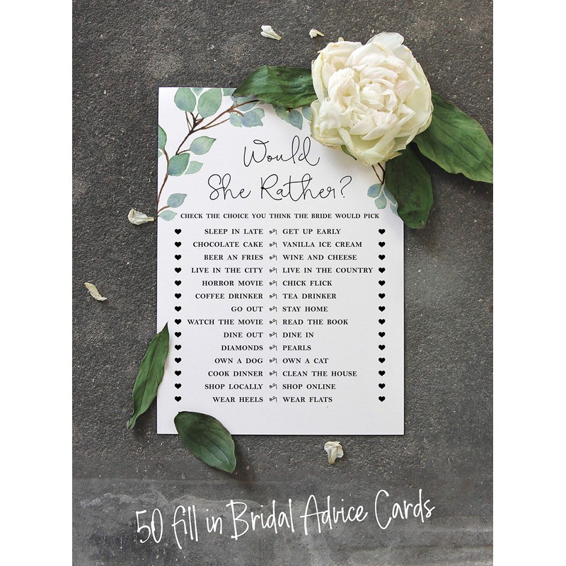 Inkdotpot Would She Rather Bridal Wedding ShoweráGame Greenery Funny Rehearsal Dinner Who Said itingáGameáBridal Shower PartyáGameáIdeas