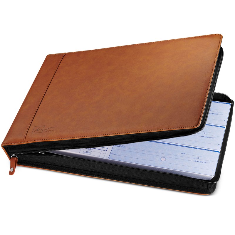 - EXECUTIVE CHECK BINDER; Premium PU leather Zippered 7-Ring Check Binder Portfolio.