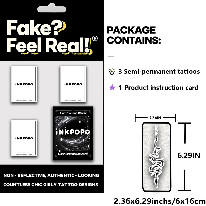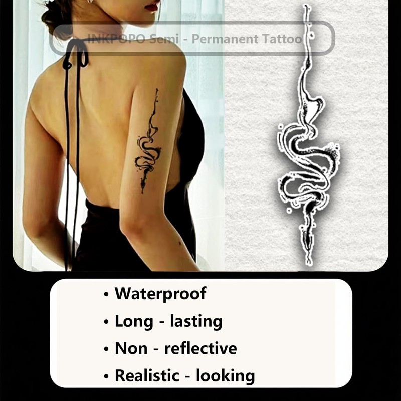INKPOPO 3 Sheets Semi-Permanent Tattoos for Adults | 7-15 Days Longwear | Waterproof & Realistic Finish | Adult Art Temporary Tattoos |Snake Series 097