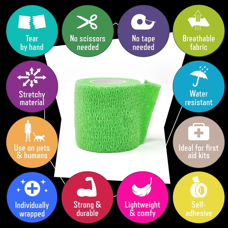 - Inksafe Assorted Colour Self Adherent Adhesive Cohesive Bandages 5cm x 4.5m Box of 12