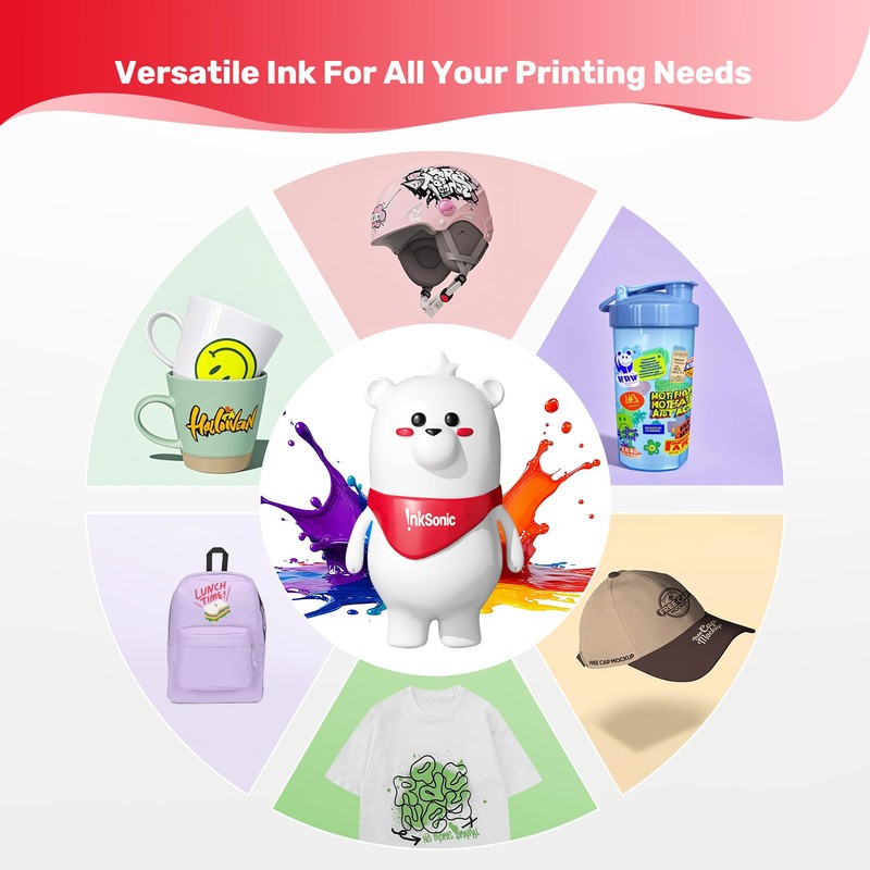• ✅Universal Compatibility: Open up the world of DTF printing with our inks. Perfect for use with InkSonic DTF printers such as InkSonic C13 R1390, E13 L1800, U13 XP600, L13 XP600, L8 XP600, and other InkSonic DTF printers, as well as ET-8550, ET8500, XP15000 L1800, L800, 1430, M1630, P400, P408, P600, P608, P800, and other DTF printers. Perfect with InkSonic DTF transfer films and DTF powders. Easily enhance your creative projects and business printing experience.
