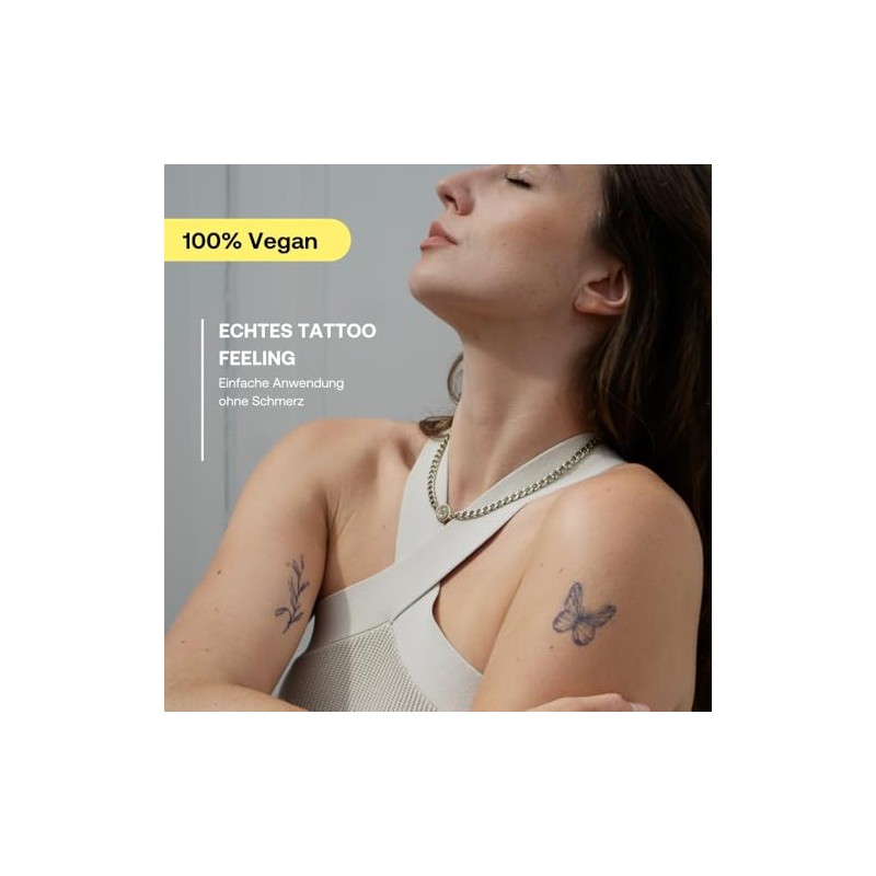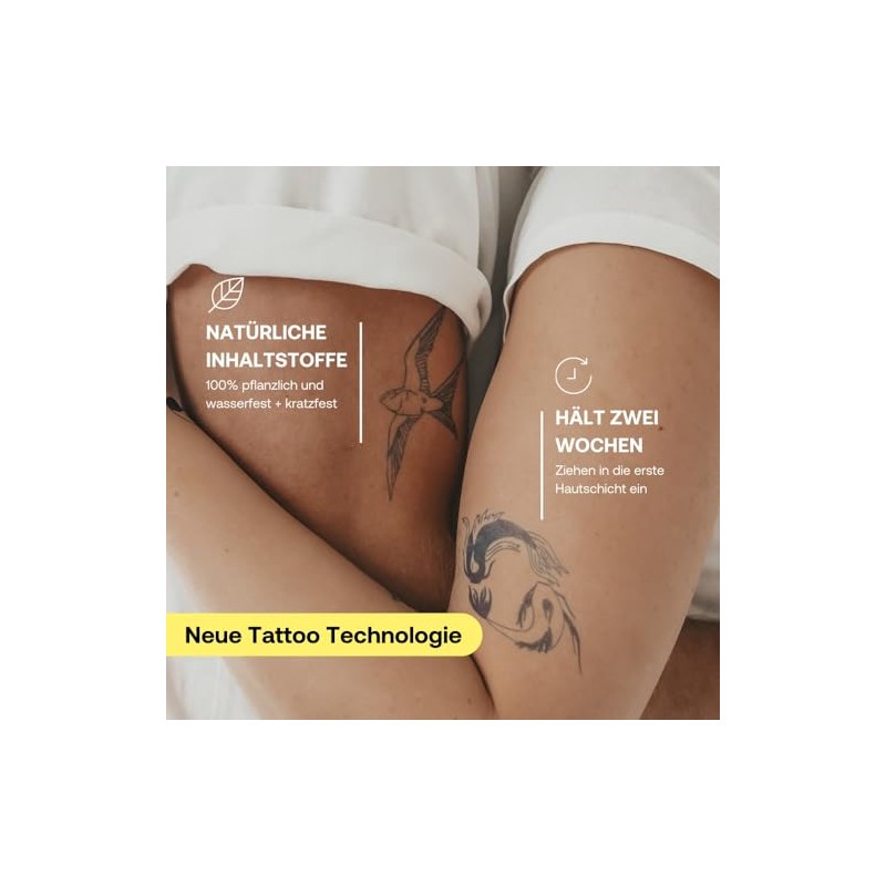 - ✅ VERTRÄGLICHE TATTOO FARBE: Vegane, EU-zertifizierte Ink Tattoo Farbe – hautfreundlich & frei von Schadstoffen. Semi-permanentes Tattoo ohne Risiko. Realistischer als Henna Tattoo und Klebetattoos.