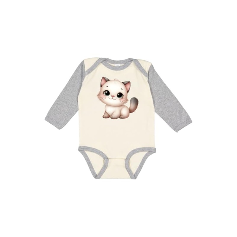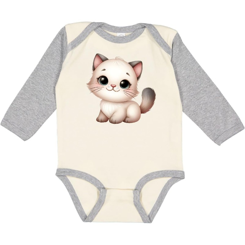 inktastic Baby Cat Long Sleeve Creeper 6 Months Natural and Heather 45a02
