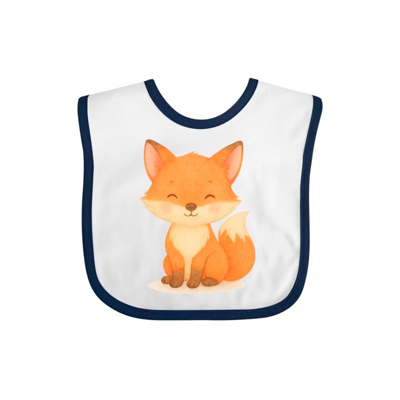 inktastic Cute Fox Illustration Baby Bib White and Navy 46ceb