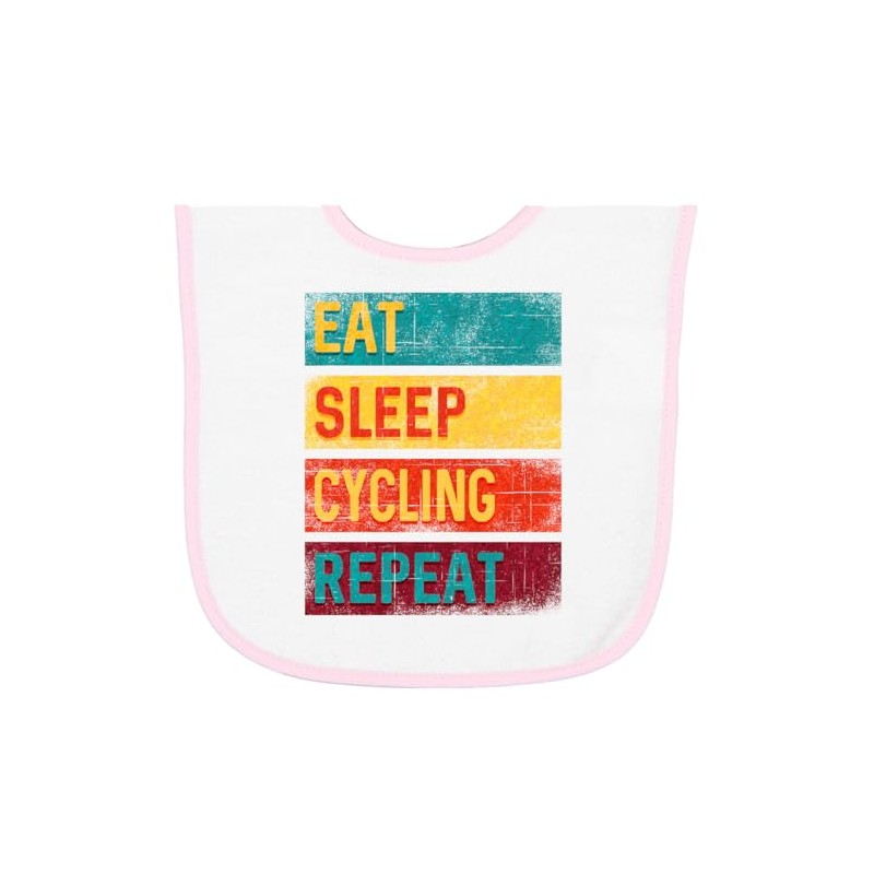 inktastic Cycling Gifts Funny Eat Sleep Cycling Repeat Baby Terry Cloth Bib White and Pink 39645