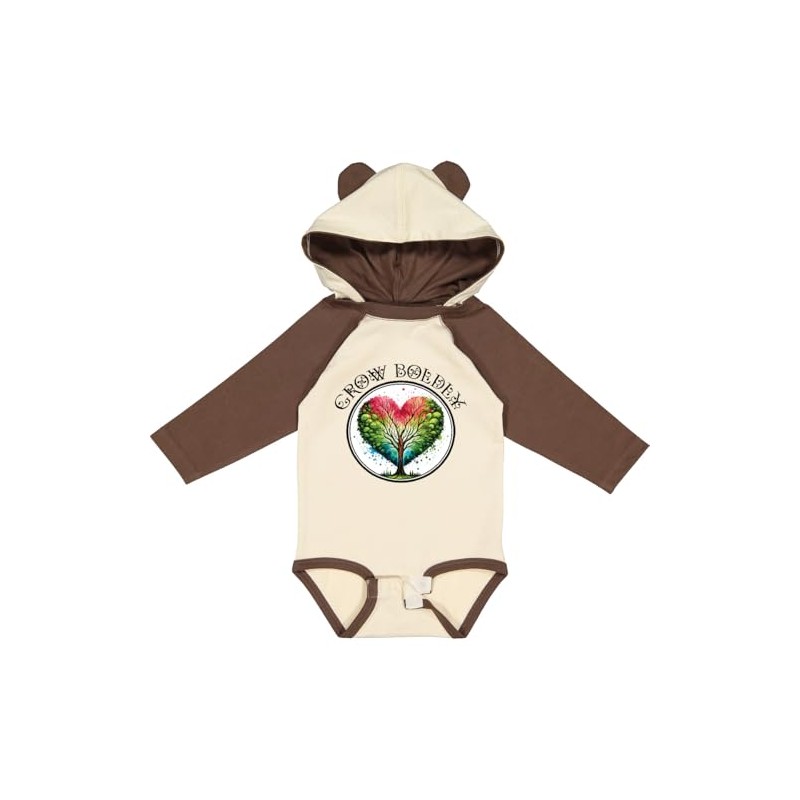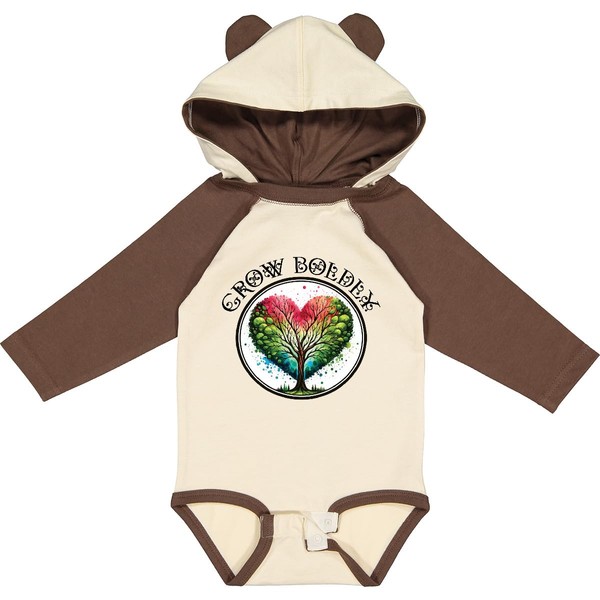 inktastic Grow Boldly Inspirational Tree Long Sleeve Creeper 12 Months Natural & Brown W Ears 45a55