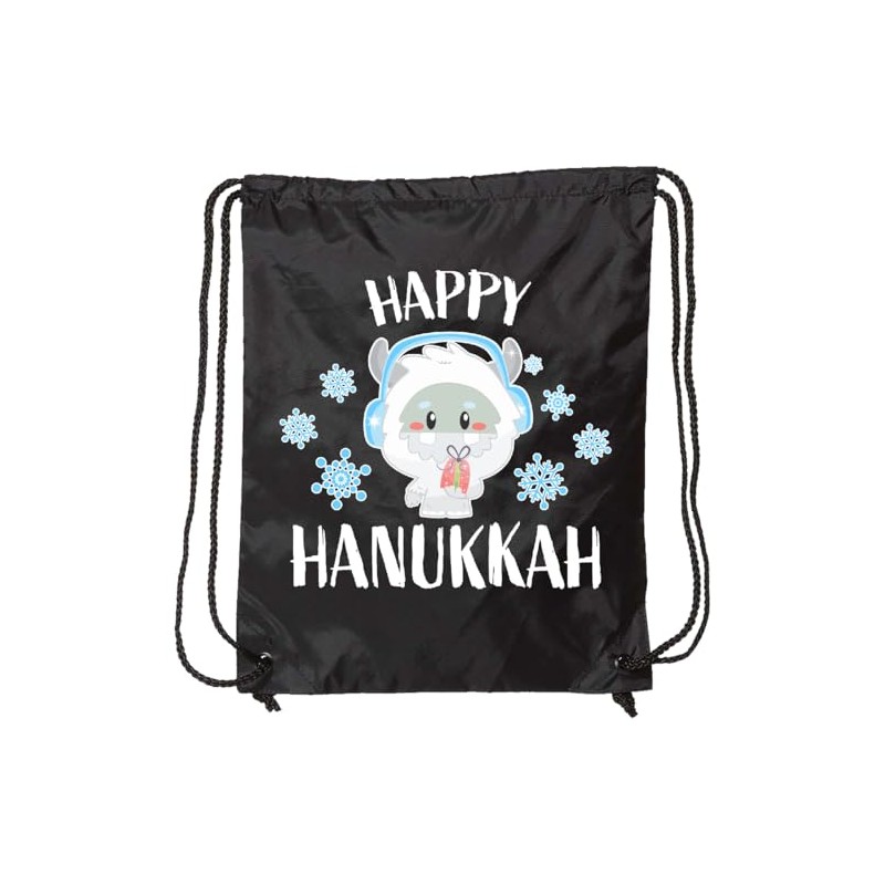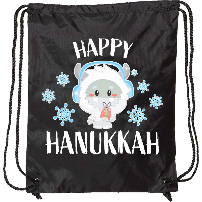 • Happy Hanukkah with Yeti and Snowflakes Drawstring Bag. Show off your Hanukkah spirit in style.