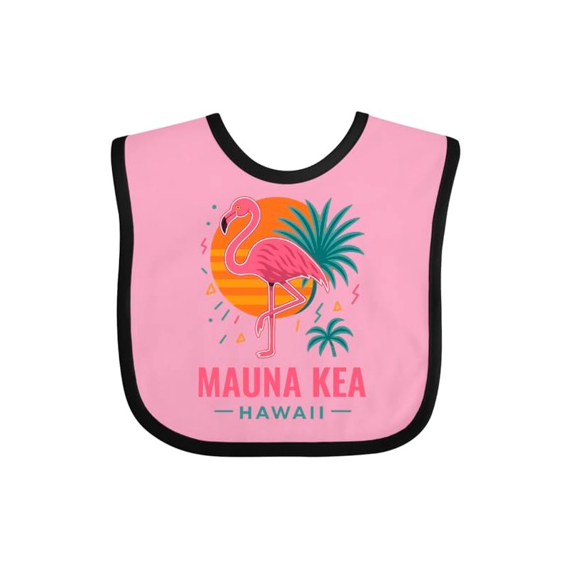 inktastic Mauna Kea Hawaii Flamingo Tropical Vibes Baby Bib Pink and Black 46c7e