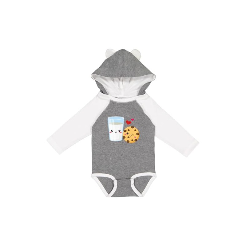 inktastic Milk and Cookies Long Sleeve Creeper 18 Months Granite & White W Ears 45a1c