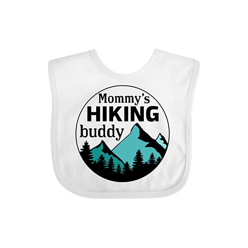inktastic Mommy's Hiking Buddy with Mountains and Trees Baby Bib White 38bf5