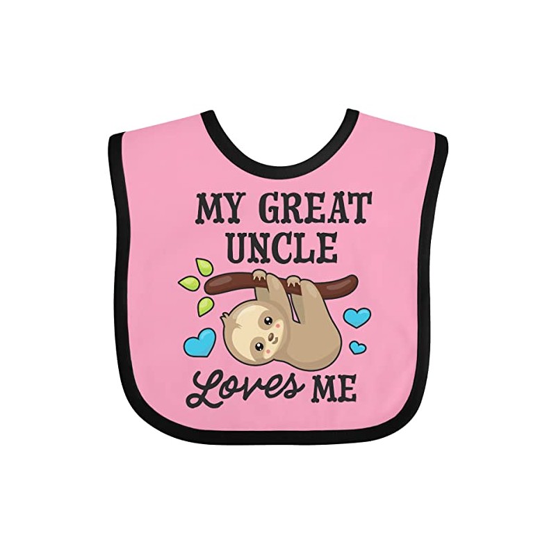inktastic My Great Uncle Loves Me with Sloth and Hearts Baby Bib Pink and Black 2f254