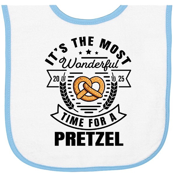inktastic Oktoberfest the Most Wonderful Time for a Pretzel 2025 Baby Terry Cloth Bib White and Light Blue 469b4