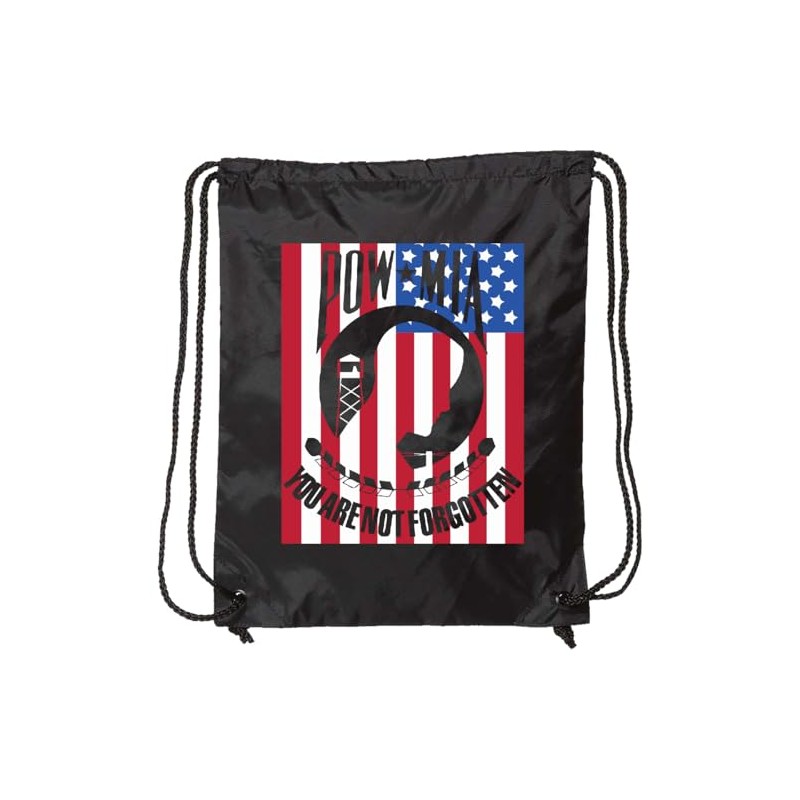 POW MIA Flag Drawstring Bag, a perfect way to honor and carry the memory of those captured, missing, and lost soldiers.
