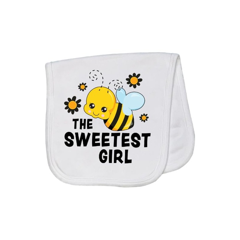 inktastic The Sweetest Girl with Bee and Honey Combs Baby Burp Cloth White 3815d